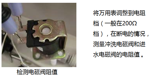 5.進水電磁閥和沖洗電磁閥的測量與判定方法