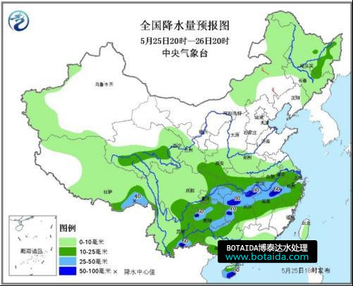 根據(jù)中央氣象臺預計,從25日起,主要降雨區(qū)域?qū)⒈碧е灵L江中下游一帶,西南地區(qū)東部、江南中北部、江漢、江淮等地的部分地區(qū)將進入降雨集中時段。上述大部地區(qū)在未來10天內(nèi)有7至8天都處于降雨狀態(tài)中,主要降雨過程出現(xiàn)在25日至27日和5月31日至6月2日。