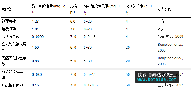 表3 文獻(xiàn)報(bào)道的負(fù)載改性砂吸附劑的磷吸附效果