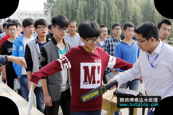 “最嚴(yán)高考年”不僅僅是針對(duì)考試中的作弊處罰,高考生進(jìn)場(chǎng)要安檢,將有金屬探測(cè)儀“上陣檢測(cè)”。戴眼鏡的考生要取下眼鏡,耳朵、腋下、手腕處、腰部、皮帶扣內(nèi)側(cè)、衣袋、鞋襪內(nèi)等等都是檢查重點(diǎn)。圖為2016年6月7日,在江蘇連云港市贛榆高級(jí)中學(xué)考點(diǎn),監(jiān)考老師對(duì)入場(chǎng)的考生進(jìn)行檢查。思維/視覺中國(guó)