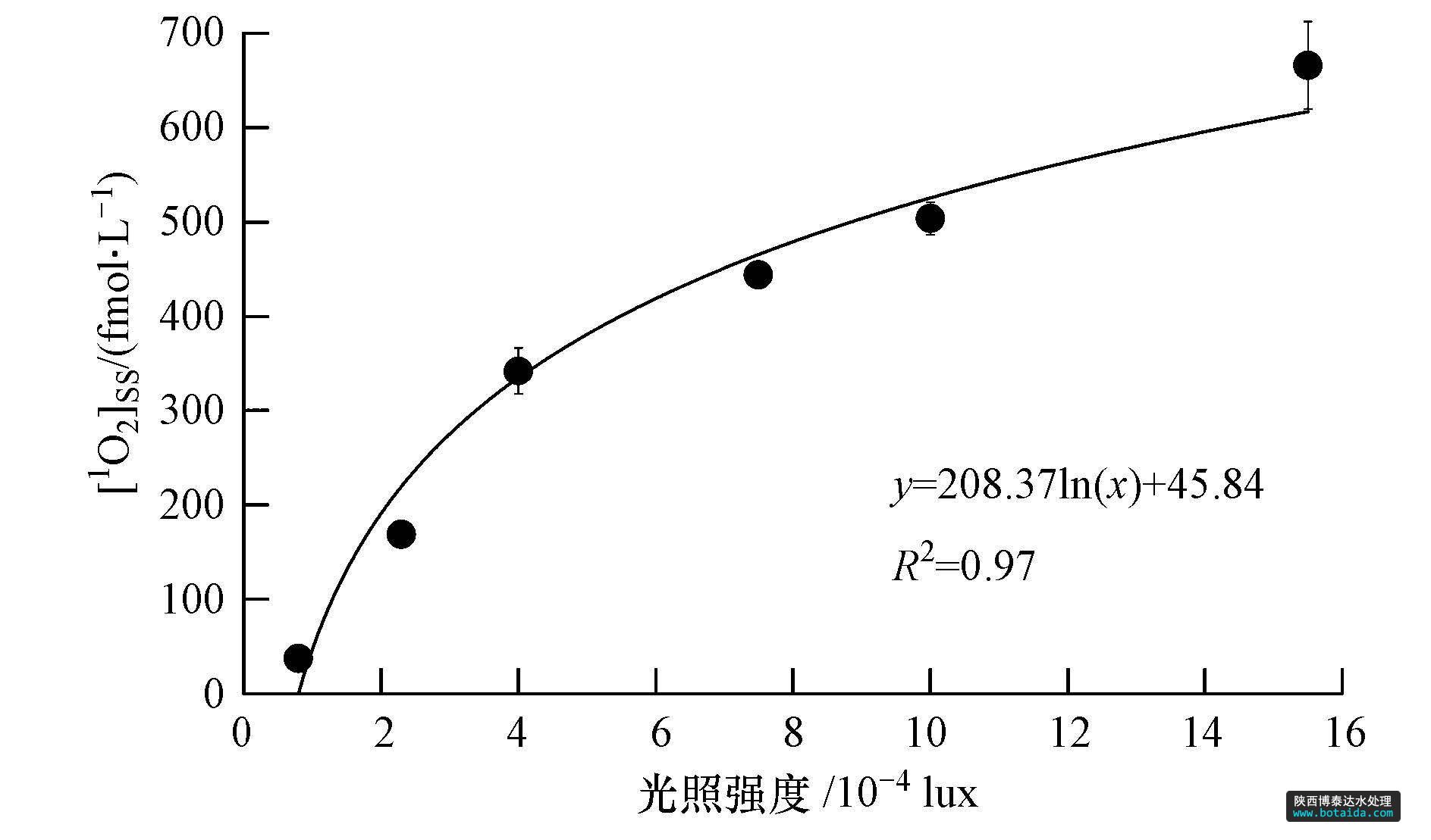 圖5 不同光照強(qiáng)度下[1O2]ss值