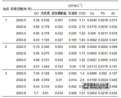 表 7 珠江口2002—2003年3個(gè)站點(diǎn)水質(zhì)指標(biāo)監(jiān)測數(shù)據(jù)cj