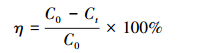式中,η為MG的去除率;C0為反應液中MG的初始濃度(40 mg · L-1);Ct為t min時反應液中MG的濃度(mg · L-1),所有實驗平行3組進行.