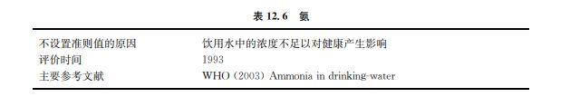 氨包括非離子化(NH3)和離子化(NH+ 4 )兩種形態(tài)。環(huán)境中的氨來自新陳代謝、農(nóng)業(yè)和 工業(yè)的加工處理過程和氯胺消毒過程。在地下水和地表水中氨的背景濃度常低于 0.2mg/L。不過,厭氧條件下的地下水含有的氨可高達(dá)3mg/L。密集飼養(yǎng)動物會大幅度增 加地表水中的氨。氨的污染也可能來自水泥灰漿管道的襯里析出。水中的氨是水可能受細(xì) 菌、污水和動物排泄物污染的指示指標(biāo)(見表12.6)。