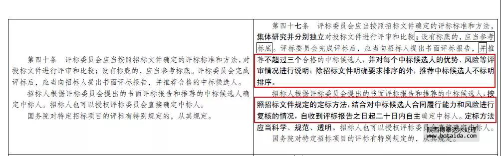 這意味著甲方有著更大的自主選擇權(quán),而評標(biāo)委員會只推薦三個中標(biāo)候選人,而且不用排序。也就是說,不會有第一中標(biāo)候選人、第二中標(biāo)候選人、第三中標(biāo)候選之說。這也打破了評標(biāo)委員會推薦的第一中標(biāo)候選人默認(rèn)為中標(biāo)人的長期慣例。甲方只需要在三個中標(biāo)候選人當(dāng)中,自主確定中標(biāo)人。
