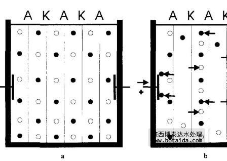 1929年,泡利(W. Pauli)和雅爾科(E. Yalko)首次描述了三室電滲析裝置,置于中間室的料液中的陰離子和陽離子在電場作用下分別進入正極室和負極室。1935年,特奧雷爾(T. Teorell)建立了荷電膜理論,認識到陽離子選擇性透過膜含有帶負電荷的固定離子,陰離子選擇性透過膜含有帶正電荷的固定離子。1939年,馬內(nèi)戈爾德(E. Manegold)和卡勞奇(C. Kalauch)首次在三室電滲析裝置中同時使用陰離子選擇性透過膜和陽離子選擇性透過膜。