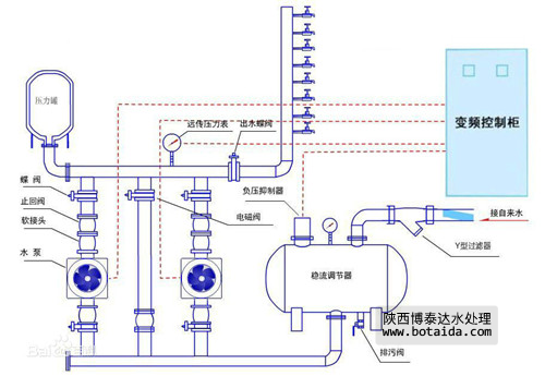 恒壓供水設(shè)備中液位變送器工作原理是當(dāng)被測介質(zhì)的兩種壓力通入高、低兩壓力室,作用在δ元件(即敏感元件)的兩側(cè)隔離膜片上,通過隔離片和元件內(nèi)的填充液傳送到測量膜片兩側(cè)。