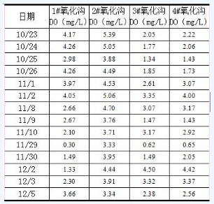 表3 各氧化溝實(shí)測(cè)DO數(shù)據(jù)