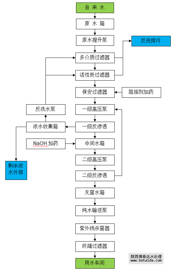 6 | 二級反滲透裝置 | 出力10m3/h,回收率80% | 套 | 1 | 博泰達 |