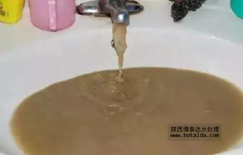 由于老化的自來(lái)水管道生銹,鐵銹隨著自來(lái)水從水管出口流出